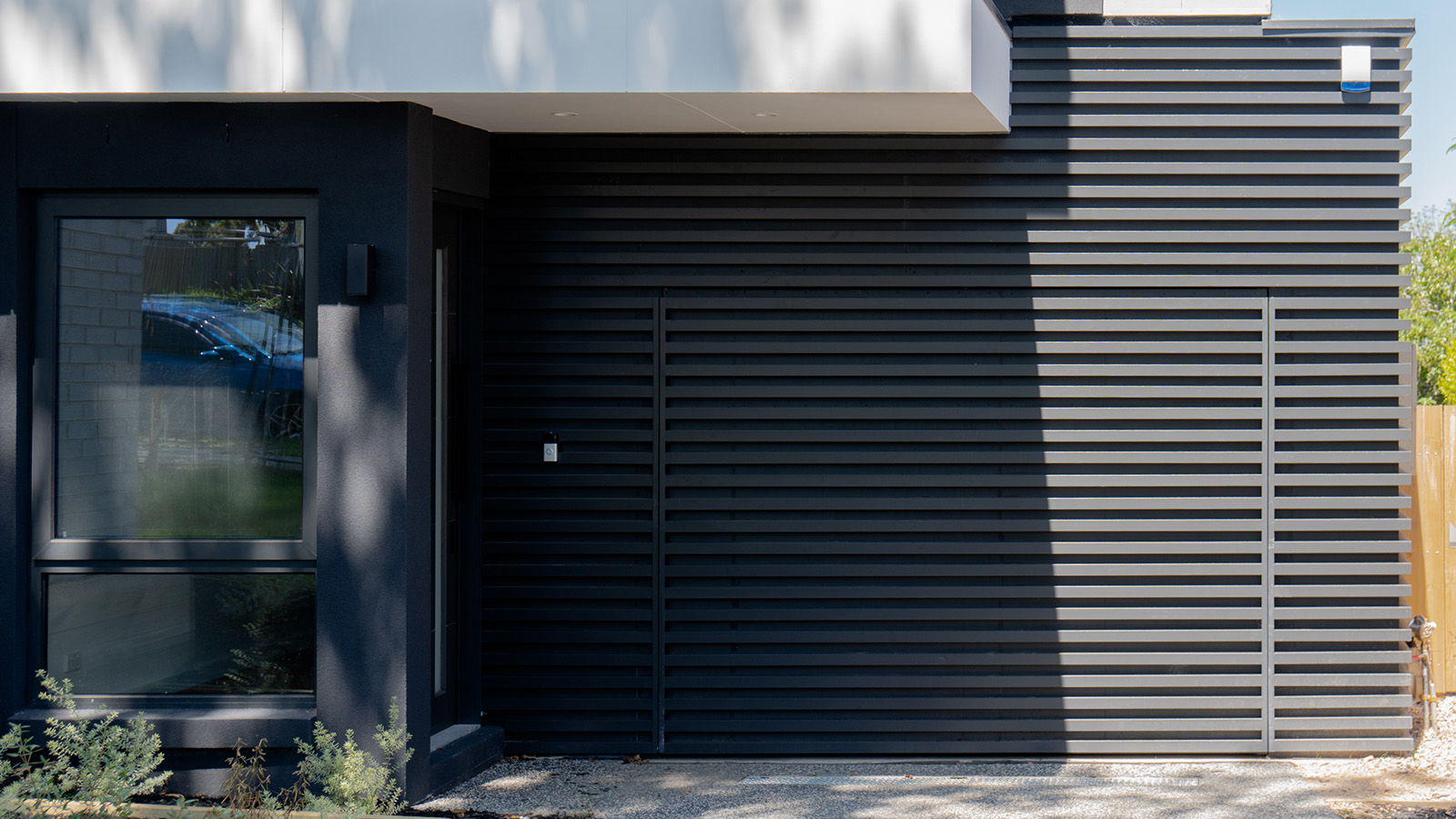 A key element in achieving this modern look is the application of Alteria 50 x 50 aluminium battens finished in the timeless Monument hue. What sets this design apart is the decision to employ a horizontal orientation for the battens, a departure from the conventional vertical arrangement. This intentional choice plays a pivotal role in elongating the facade, adding a dynamic and visually captivating dimension to the structure.