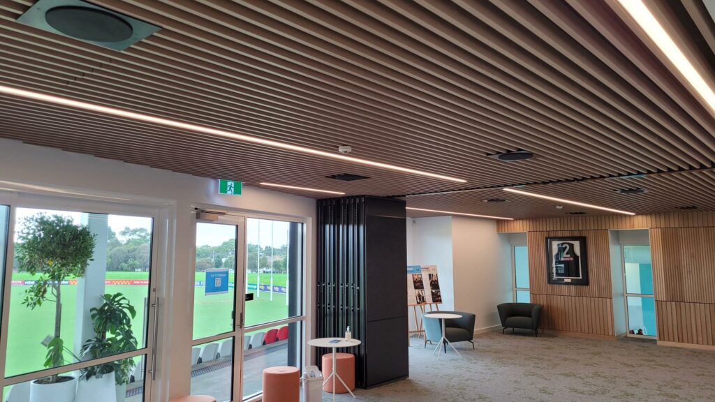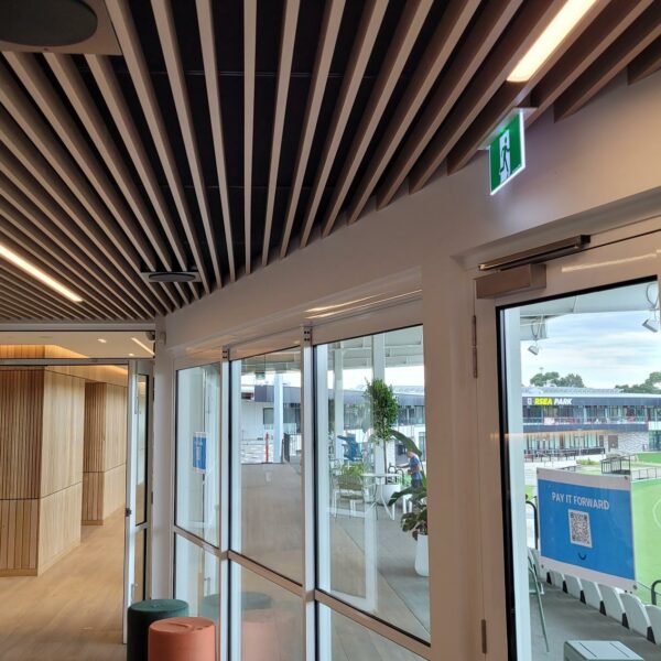 The other remaining options are a powder-coat wood look aluminium batten and cladding. It was only a few years ago that the phrase “powder-coated wood-look aluminium” would send shivers up an architect or designers’ spine, as the finish and performance was sub-standard and not overly realistic.